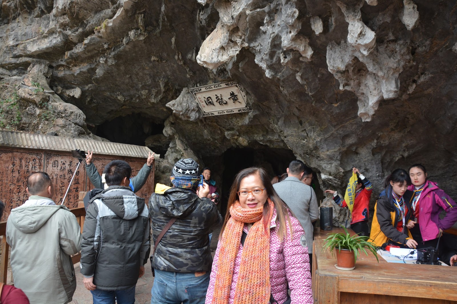 (This Huanglong cave system is made of karst and is well designed for tours of large groups. 2 rivers passes through it, giving us the opportunity to sit in boats that meanders through this huge cave (see video below). Being 2 hours long, we were well challenged with steep climbs, causing us to shed our winter clothings as we got deeper into the cave. See the insurance for that 19m tall stalagmite? One stalagmite had a smooth round top, which supposedly bless anyone who is fortunate enough to rub your palms over it with good fortune - an act which we duly performed - see video below)